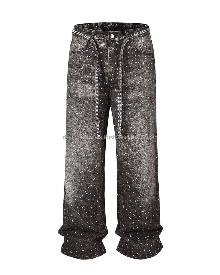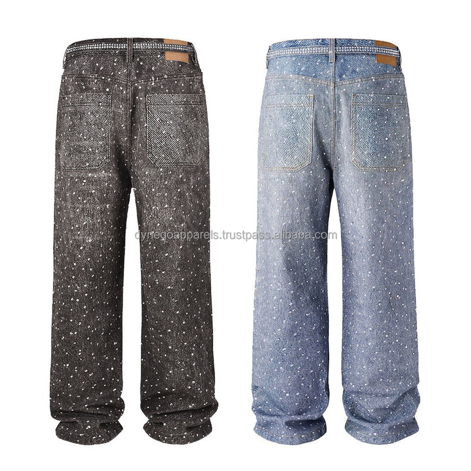 กางเกงยีนส์สีเขียวของผู้ชายกางเกงผ้าฝ้ายขากว้างทรงหลวมเอวกลางทรงหลวมดีไซน์ขาตรงสไตล์ออกแบบตามสั่ง