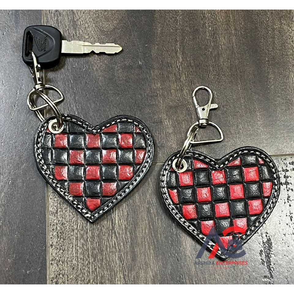 พวงกุญแจหนังลายตารางหมากรุกทำมือ
