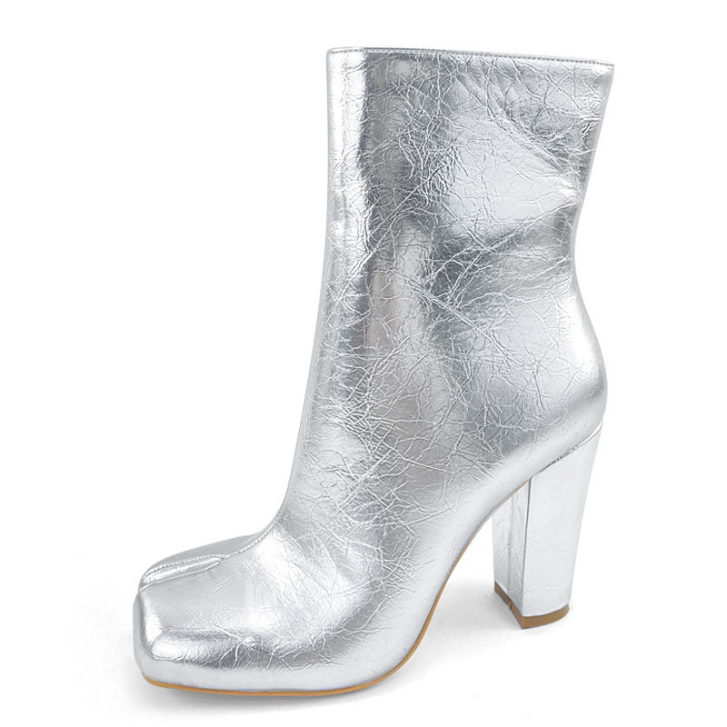 รองเท้าบูทส้นตึกแบบแยกนิ้วเท้าสำหรับผู้หญิง สไตล์แฟชั่นสำหรับการแสดงบนเวที