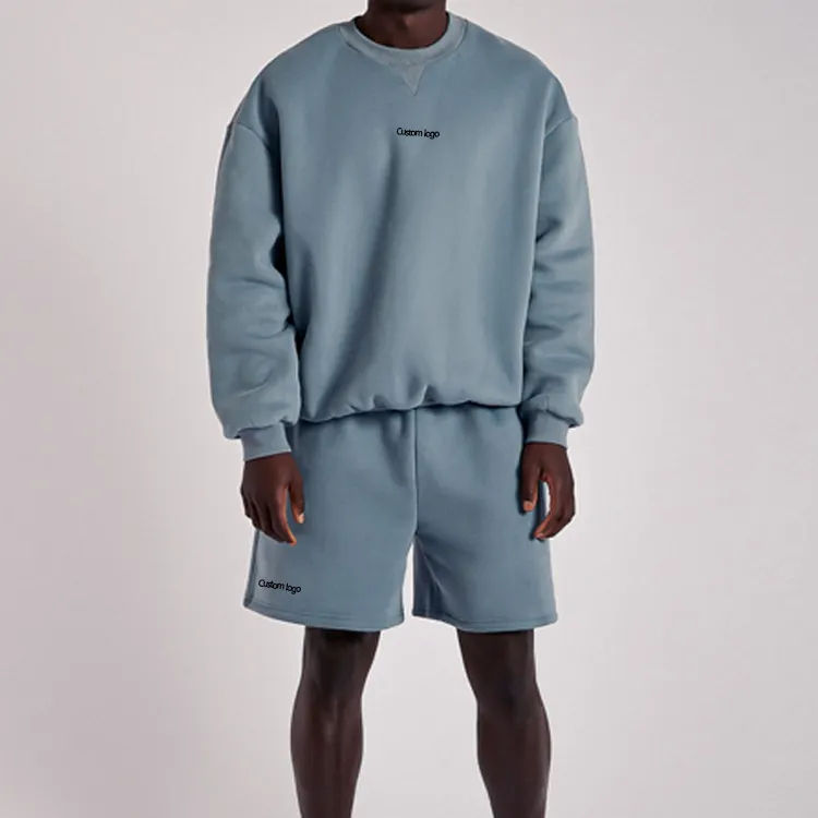 เซ็ตเสื้อฮู้ดและกางเกงขาสั้นของผู้ชายชุดวอร์มชุดเสื้อผ้าผ้าฝ้ายสำหรับคู่รักผ้าเทอร์รี่