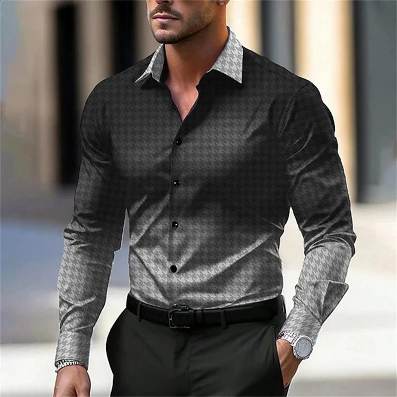 เสื้อลำลองแขนยาวสำหรับผู้ชายเสื้อเชิ้ตผ้าฝ้ายออร์แกนิกพิมพ์ลาย3D ใหม่เสื้อคอปกแบบกำหนดเอง