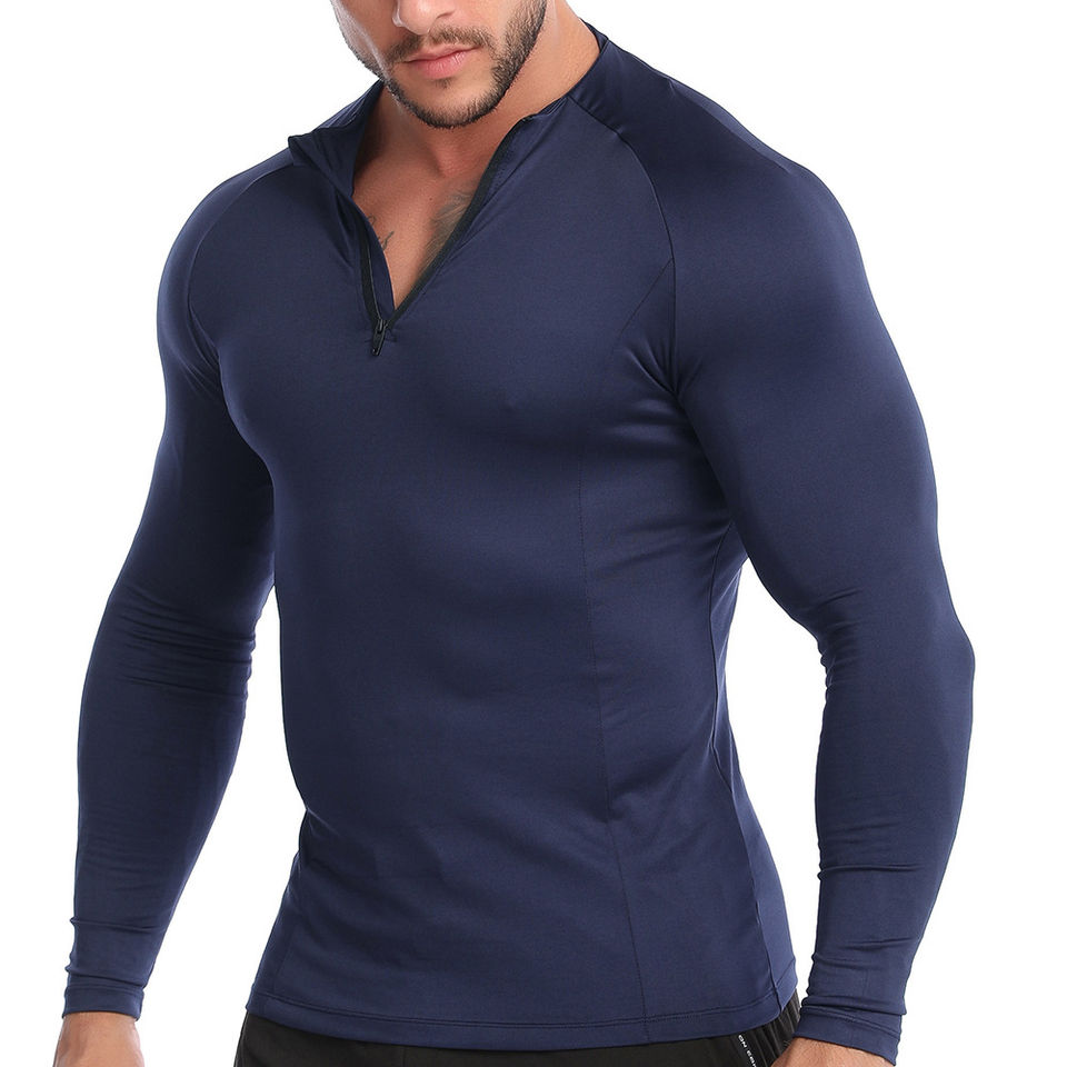 เสื้อรัดกล้ามเนื้อแขนยาวสำหรับผู้ชายเสื้อผ้าฟิตเนสแห้งเร็ว