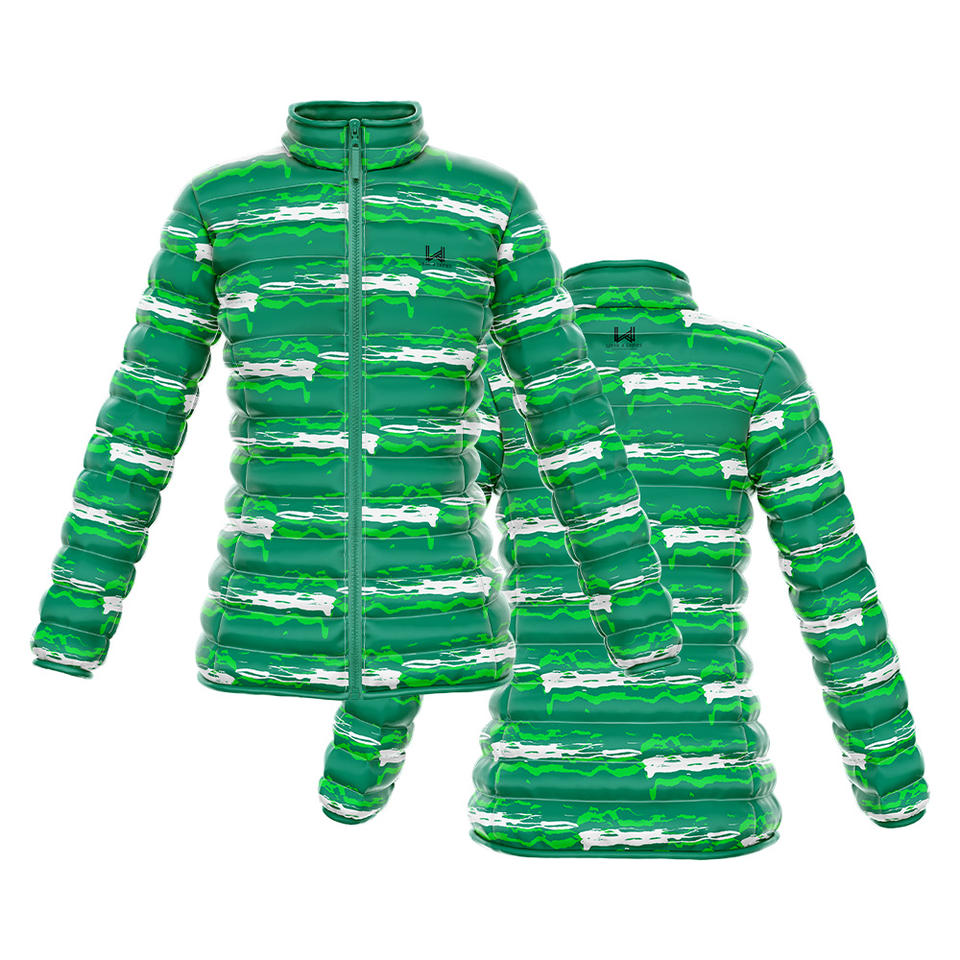 แจ็คเก็ตพัฟเฟอร์แบบมีซิปสำหรับผู้หญิง ดีไซน์แบบซับลิเมชั่นสั่งทำพิเศษ ผ้าแคนวาสพรีเมียม กันน้ำ ระบายอากาศได้ดี เหมาะสำหรับฤดูใบไม้ร่วงและฤดูหนาว