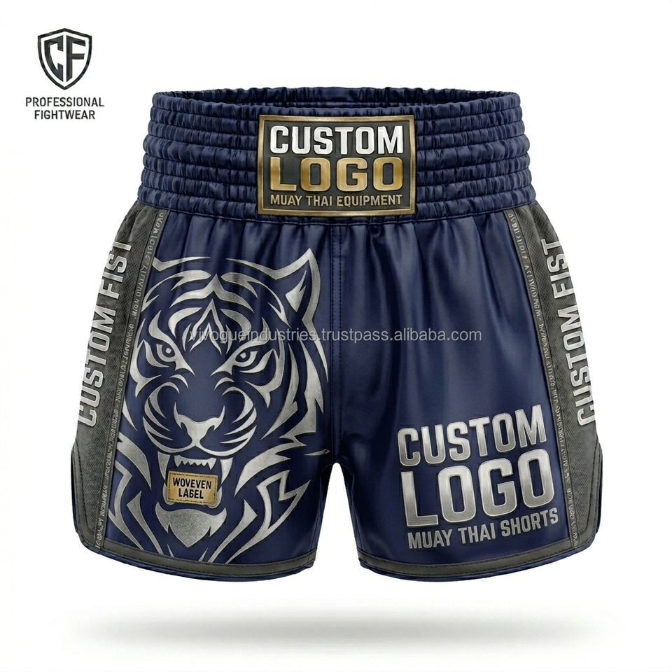 กางเกงมวยไทยปักลายแบบซับลิเมชั่นสั่งทำพิเศษ ราคาโรงงาน กางเกงชกมวยผ้าซาตินสำหรับผู้ชาย ขายส่งอุปกรณ์ฝึกซ้อมต่อสู้