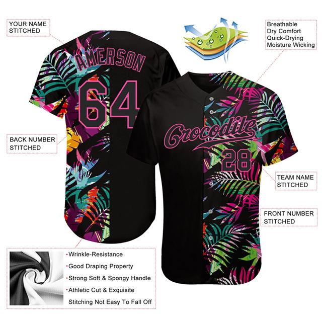 Custom Sublimated Floral Baseball Jersey 100% Polyester Quick-Dry Moisture-Wicking Athletic Fit Short Personalized Button-Down