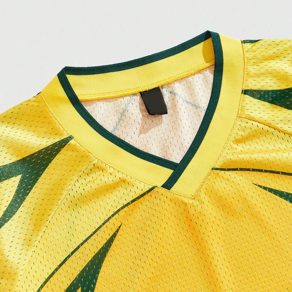 เสื้อฟุตบอลอเมริกันแบบตาข่ายพิมพ์ลายตามสั่ง คอวี ชุดกีฬาทีม ระบายอากาศได้ดี ผลิตจากโพลีเอสเตอร์ รับผลิตแบบ OEM ผลิตจำนวนมาก