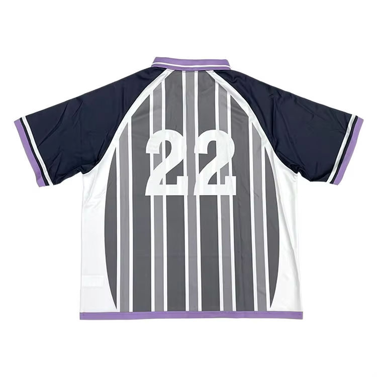 เสื้อฟุตบอลคอปกสไตล์เรโทรวินเทจแบบซับลิเมชั่นลายทางสตรีทแวร์ 100% โพลีเอสเตอร์ ระบายอากาศได้ดี สำหรับทีม