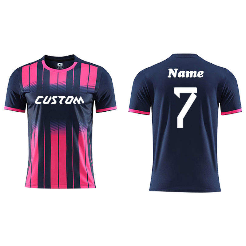 เสื้อฟุตบอลแบบซับลิเมชั่นสั่งทำพิเศษ แห้งเร็ว ระบายอากาศได้ดี น้ำหนักเบา แขนสั้น สกรีนชื่อทีมและหมายเลขตามสั่ง ผลิตแบบ OEM สำหรับทุกเพศ 100%
