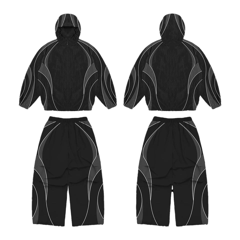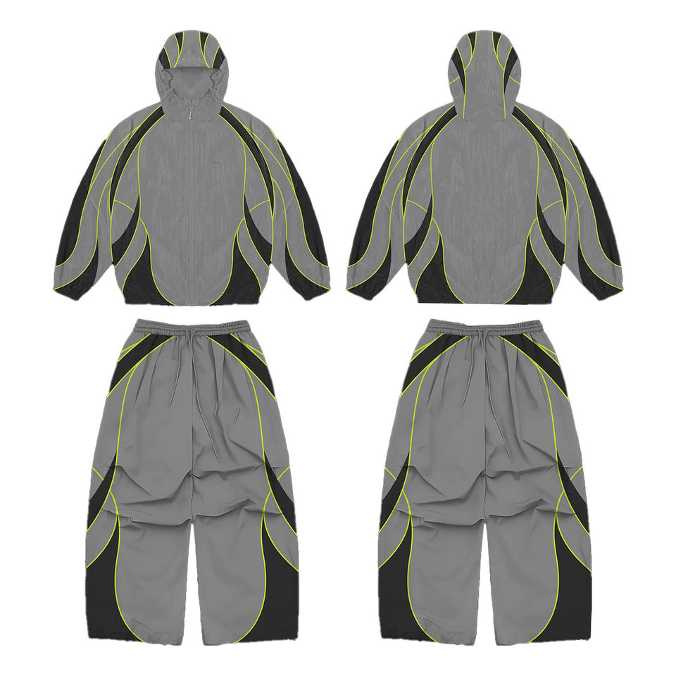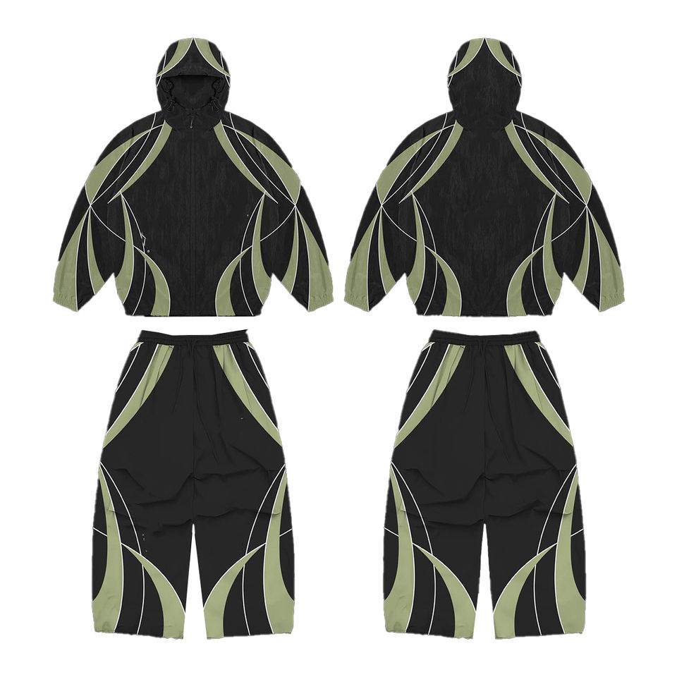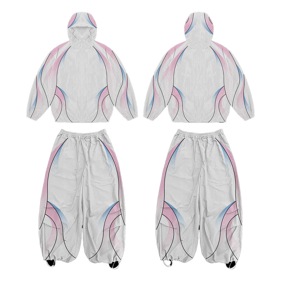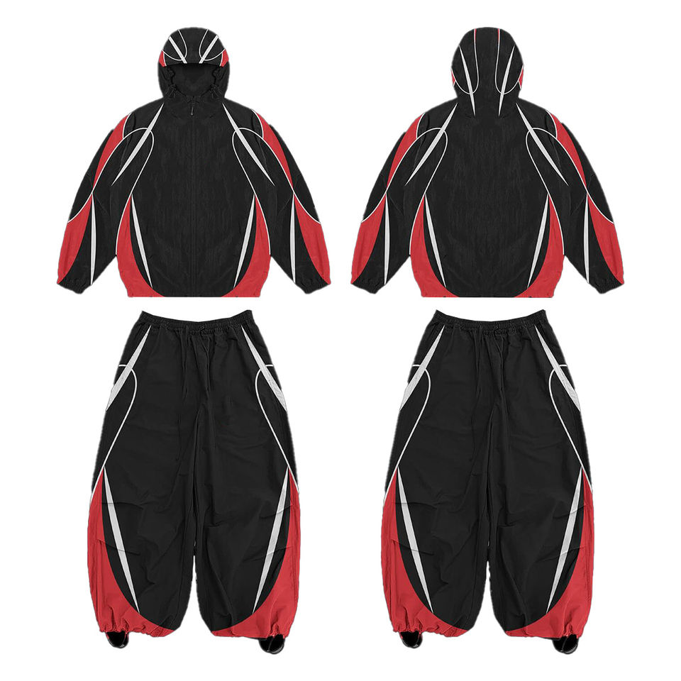 ชุดวอร์มกันน้ำพิมพ์ลายแบบกำหนดเองขายส่ง ชุดเซ็ต 2 ชิ้น ผ้าไนลอน