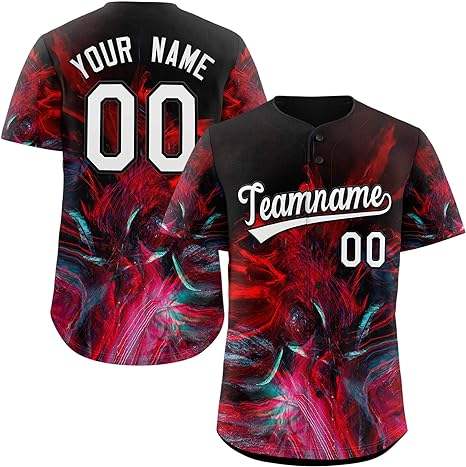 เสื้อเบสบอลแบบซับลิเมชั่นลายพิมพ์นามธรรมแบบไท-ได แขนสั้น ติดกระดุมเต็มตัว พร้อมชื่อทีมและหมายเลข ชุดซอฟต์บอล