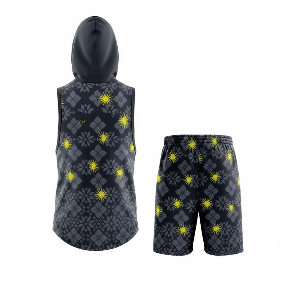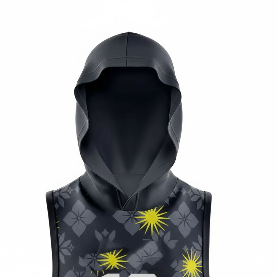 ชุดบาสเก็ตบอลแบบถ่ายเทความร้อนได้ดีสำหรับผู้ชาย ชุดฤดูร้อนผ้าตาข่ายแห้งเร็ว เสื้อแขนกุดมีฮู้ด กางเกงขาสั้นสำหรับฝึกซ้อม ระบายอากาศได้ดี ชุดกีฬา