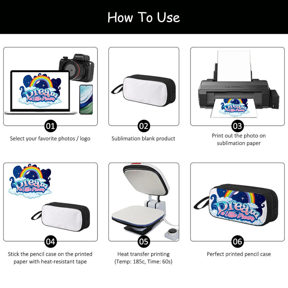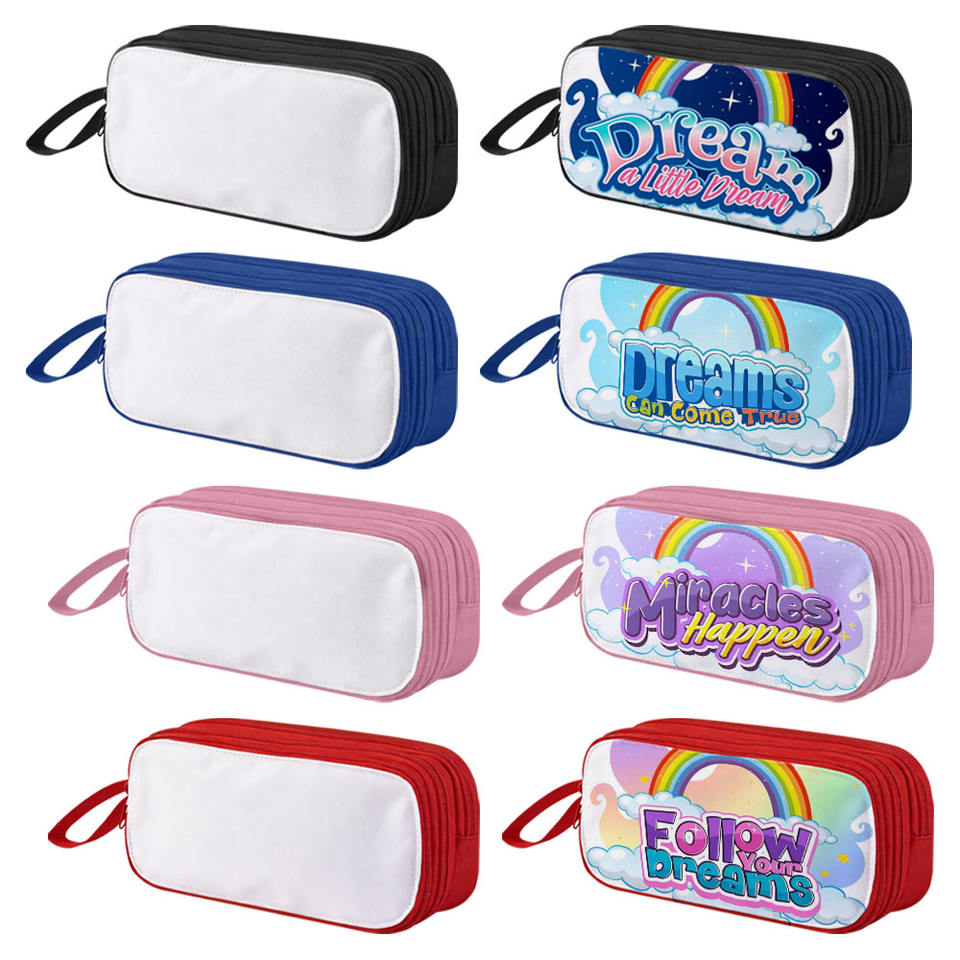กล่องดินสอแบบสองชั้นพิมพ์ลายซับลิเมชั่นเองได้ ผลิตจากโพลีเอสเตอร์ 600D จากโรงงานโดยตรง แผงพิมพ์ถอดออกได้ 4 สี กระเป๋าใส่เครื่องเขียน