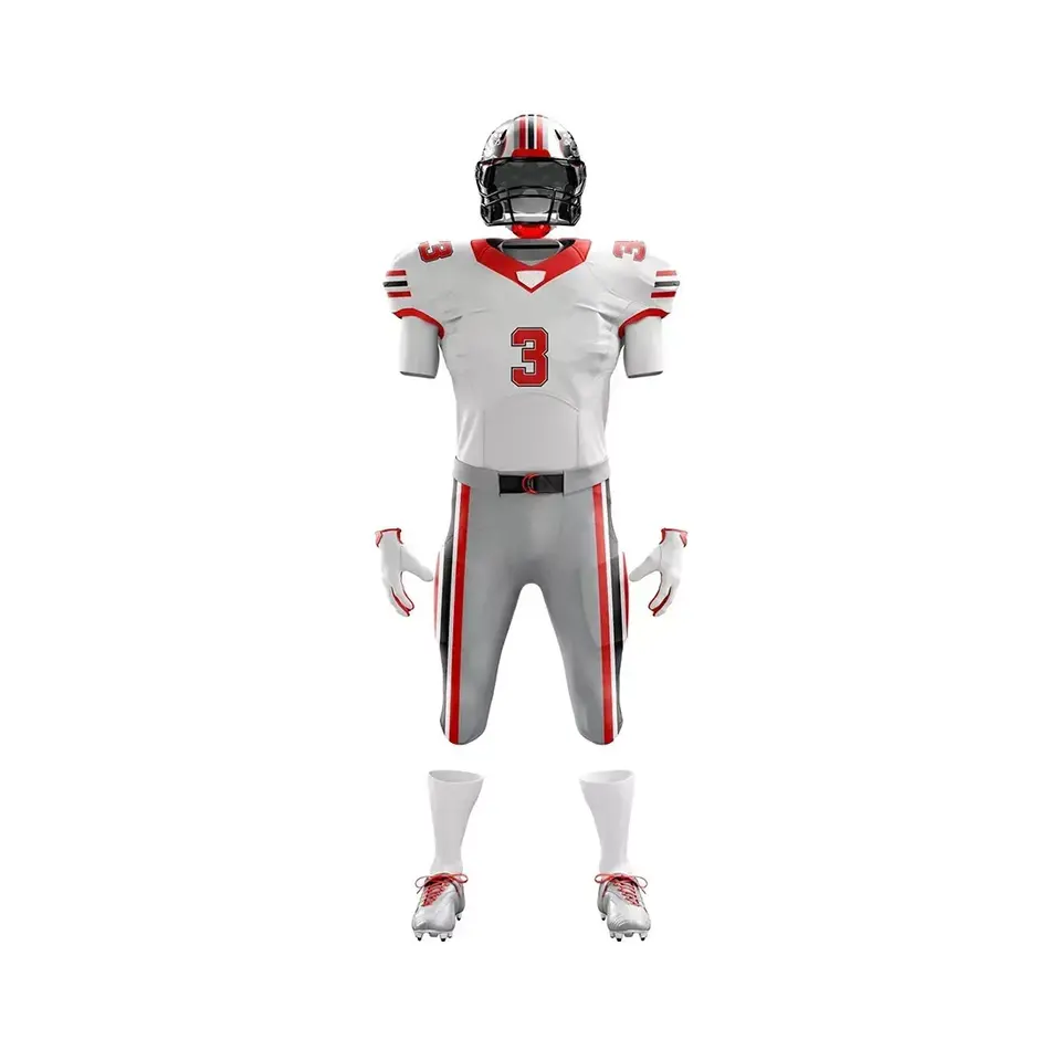 ชุดเสื้อเจอร์ซีย์ฟุตบอลแขนสั้นระบายอากาศได้ดีชุดเสื้อเจอร์ซีย์กางเกงทีมอเมริกันฟุตบอลแบบสั่งตัดพิมพ์ชื่อสโมสร
