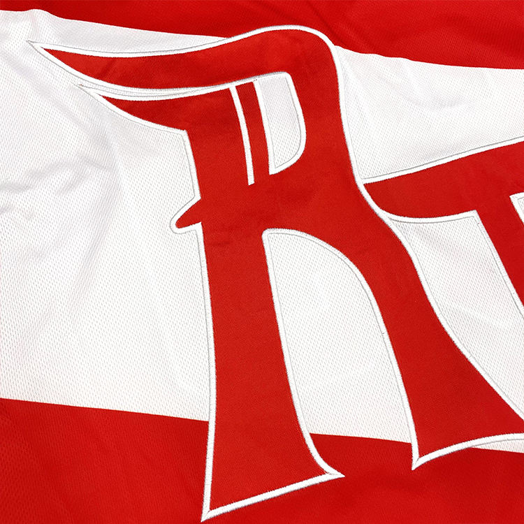 เสื้อกีฬาฮอกกี้เยาวชนแบบตลกสีขาวและสีแดงงานปักตามสั่ง