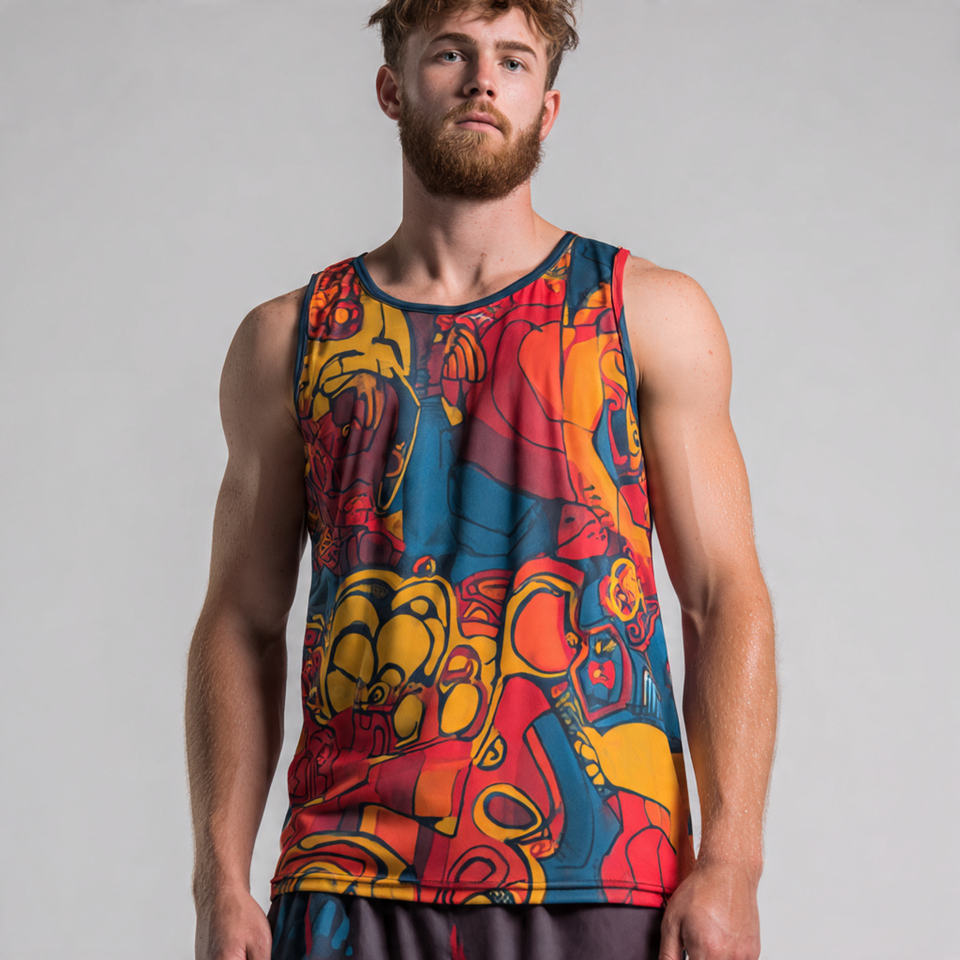 เสื้อกล้ามฟุตบอลแบบซับลิเมชั่นสั่งทำพิเศษ ผ้าโพลีเอสเตอร์ 100% ชุดฝึกซ้อม เสื้อกล้ามพิมพ์ลาย คอกลมสำหรับผู้ชาย เสื้อกล้ามซับลิเมชั่นคอเหลี่ยม