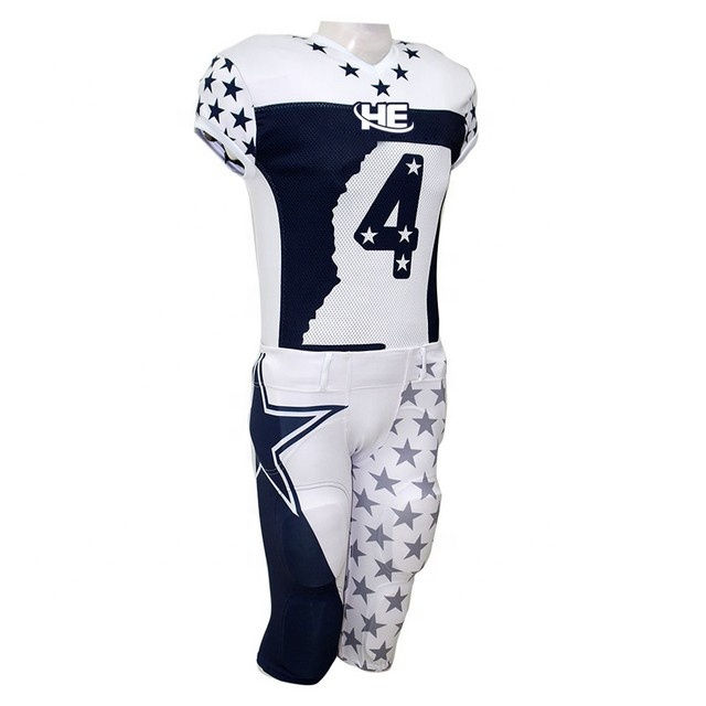 เสื้อยืดและกางเกงเครื่องแบบอเมริกันฟุตบอลสำหรับผู้ชายพิมพ์ลายดีไซน์แบบระเหิดออกแบบได้ตามต้องการสำหรับฤดูใบไม้ร่วง