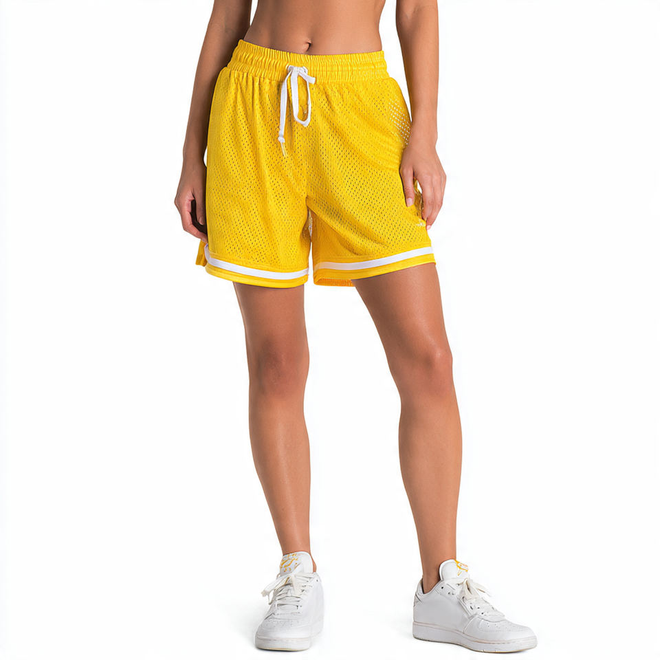 กางเกงขาสั้นผ้าตาข่ายโพลีเอสเตอร์ 100% สำหรับผู้หญิง