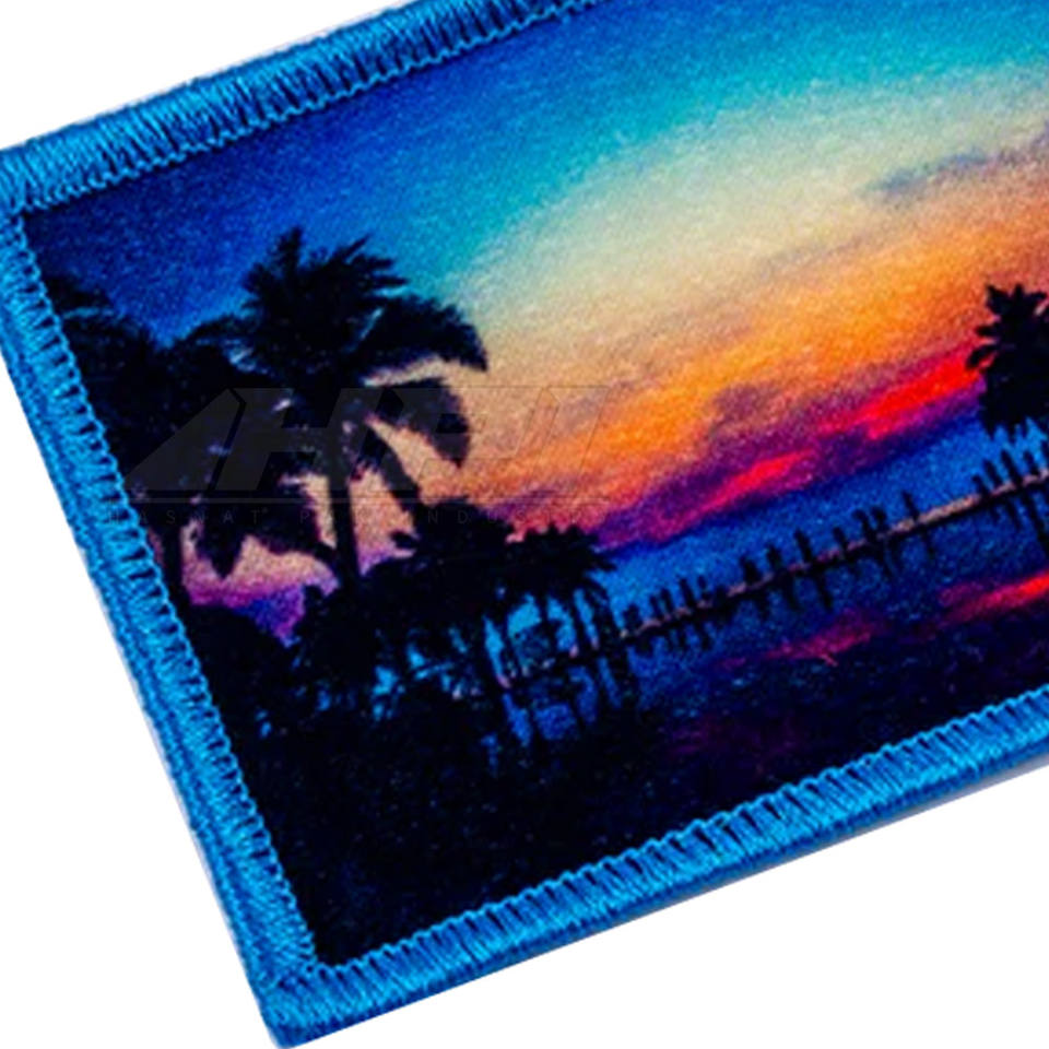 แพทช์ซับลิเมชั่นแบบกำหนดเอง พิมพ์ลายโลโก้ด้วยความร้อน สำหรับเสื้อผ้า หมวก กระเป๋า ขายส่ง