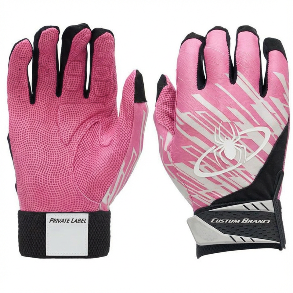 ถุงมือเบสบอลพิมพ์ลายสีชมพูแบบซับลิเมชั่น ลายกราฟิกโดดเด่น สีสันสดใส ผ้าแห้งเร็ว ราคาขายส่ง