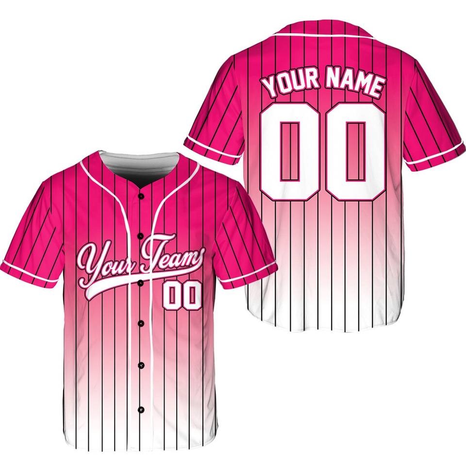 เสื้อเบสบอลลายทางแบบสั่งทำพิเศษ ติดกระดุมเต็มตัว แขนสั้น ชุดทีมซอฟต์บอล