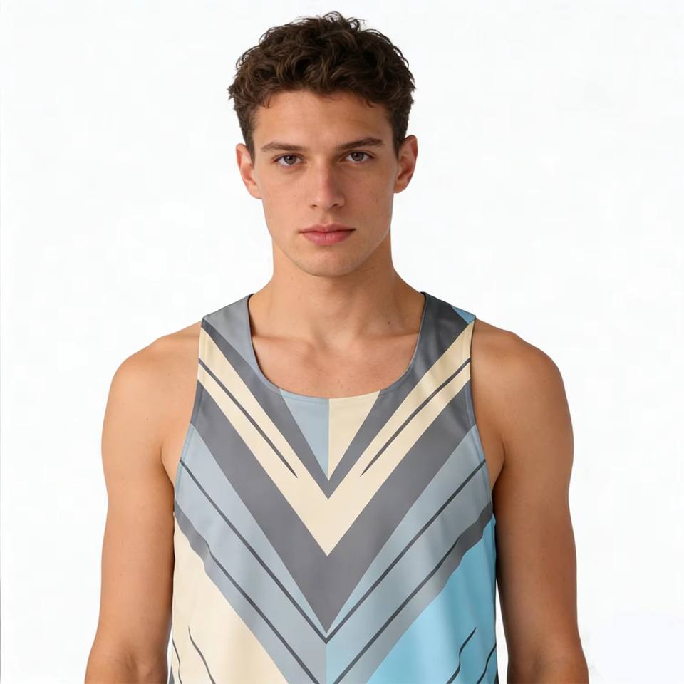 เสื้อกล้ามวิ่งมาราธอนผู้ชายแบบไร้ตะเข็บ พิมพ์ลายแบบซับลิเมชั่น น้ำหนักเบา แห้งเร็ว ระบายอากาศได้ดี เหมาะสำหรับวิ่ง ออกกำลังกาย ฟิตเนส ฤดูร้อน