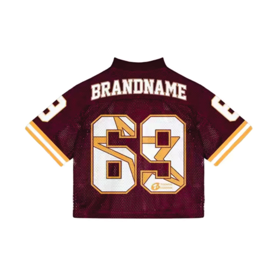 เสื้อฟุตบอลแขนสั้นระบายอากาศพิมพ์ลายแบบซับลิเมชั่น เสื้อผ้ากีฬาแนวสตรีทสไตล์อเมริกันเรโทร