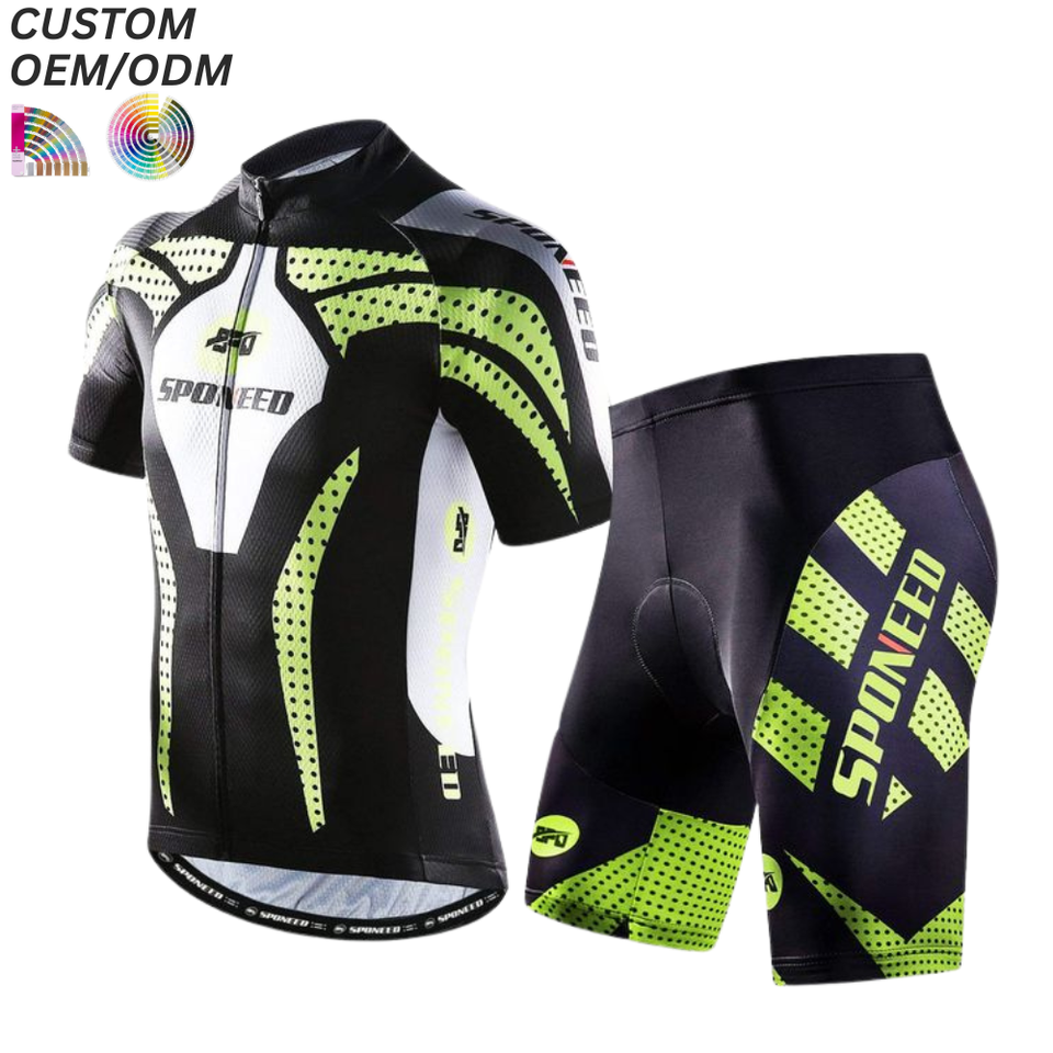 ชุดปั่นจักรยานพิมพ์ลายแบบซับลิเมชั่น กางเกงปั่นจักรยานแบบมีสายรัด แห้งเร็ว ระบายอากาศได้ดี ผลิตจากโพลีเอสเตอร์และสแปนเด็กซ์ 100% รับผลิตแบบ OEM ODM