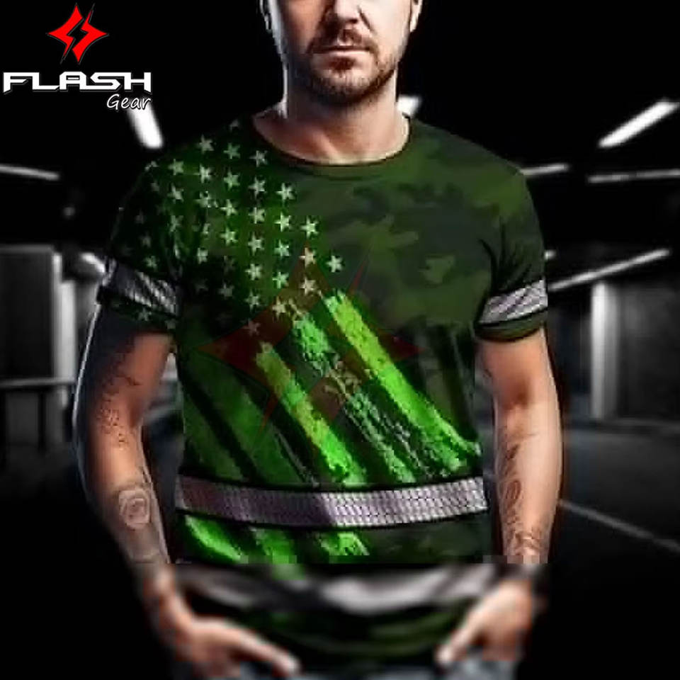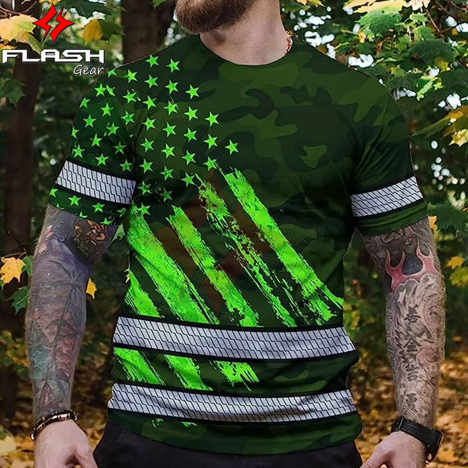 เสื้อสะท้อนแสงความปลอดภัยระดับ 1 แบบพิมพ์ลายซับลิเมชั่นตามสั่ง สำหรับผู้ชาย พร้อมโลโก้แบบกำหนดเอง กันน้ำ