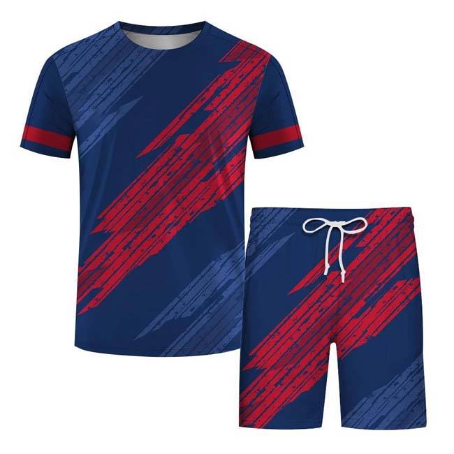 ชุดเสื้อยืดและกางเกงขาสั้นสำหรับผู้ชายชุดฤดูร้อนสไตล์ไฮสตรีทผ้าคอตตอนระบายอากาศได้ดีพิมพ์ซับลิเมชันตามสั่ง