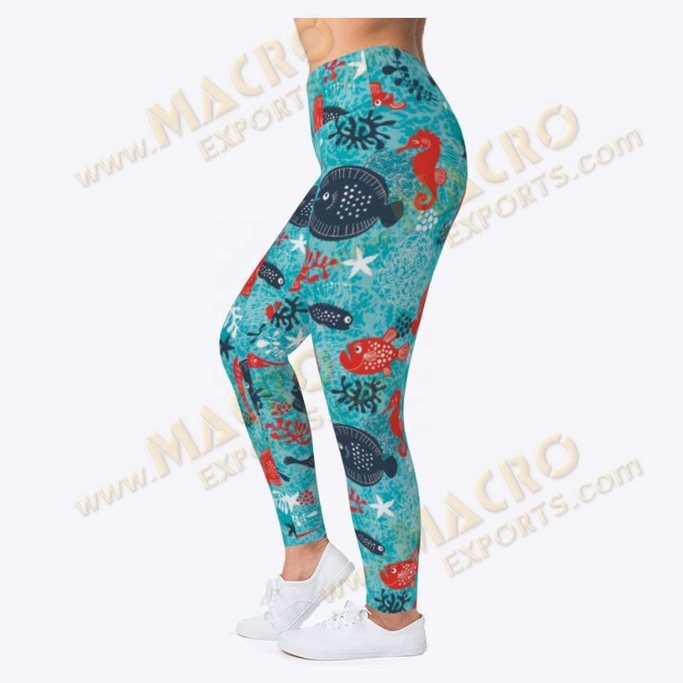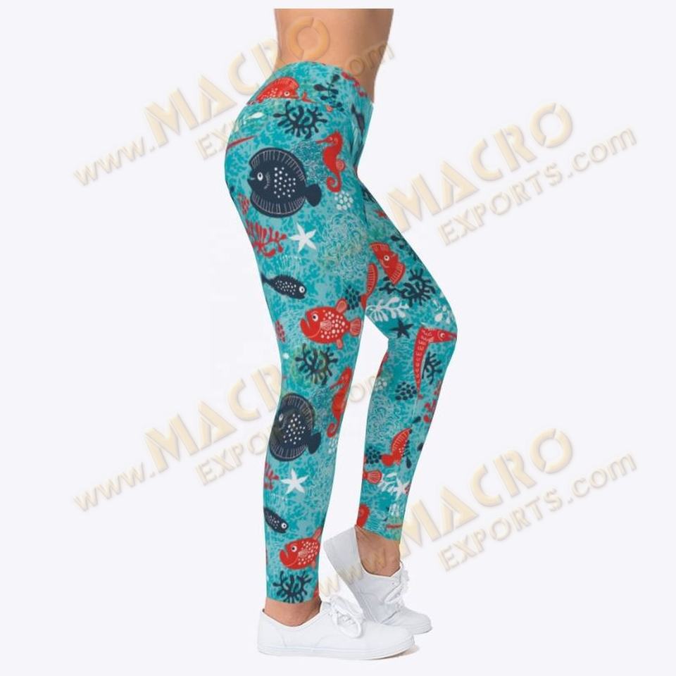 กางเกงโยคะพิมพ์ลายแบบซับลิเมชั่นสำหรับผู้หญิง ไซส์ XS-XXL ป้องกันแบคทีเรีย แห้งเร็ว ระบายอากาศได้ดี ผลิตจากโพลีเอสเตอร์และสแปนเด็กซ์