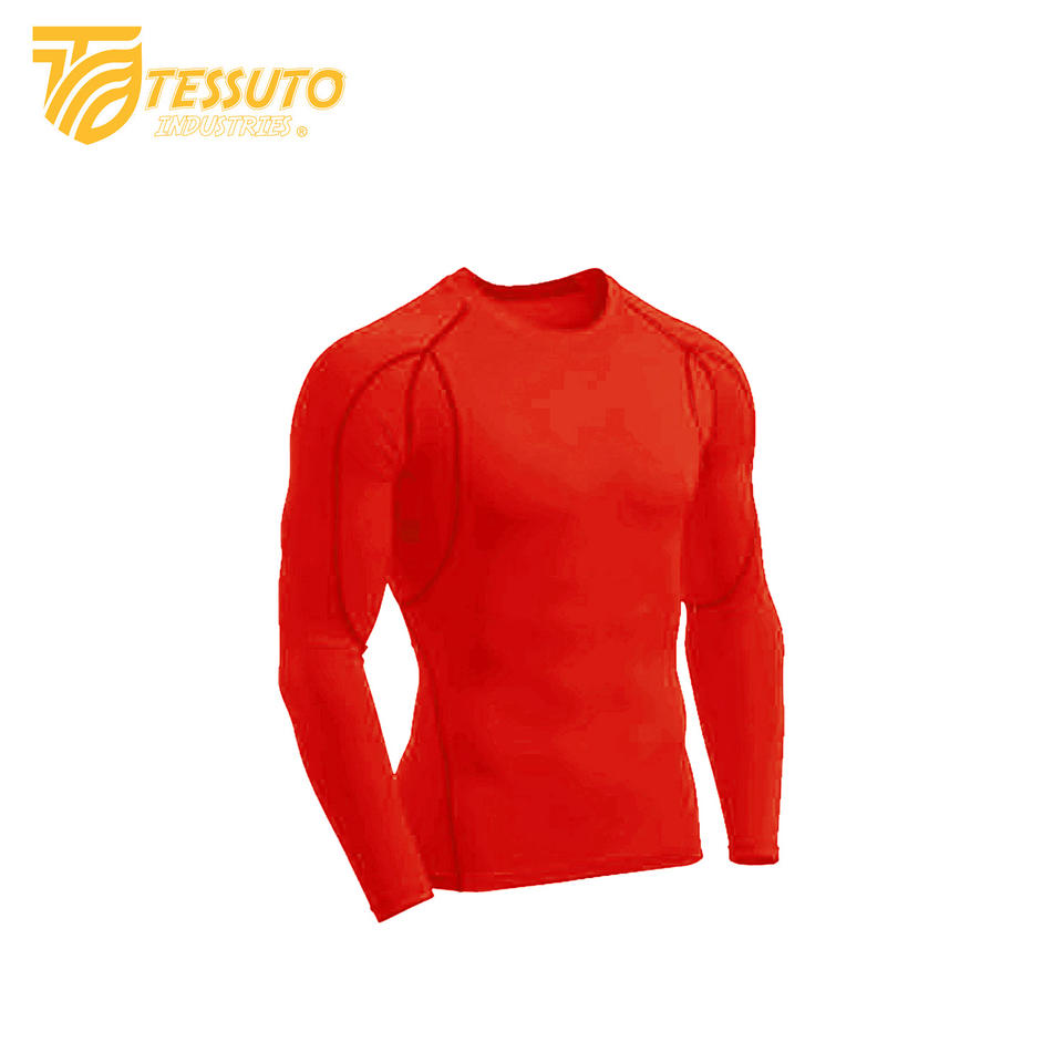 เสื้อรัดกล้ามเนื้อผู้ชาย แขนยาว ผ้าสแปนเด็กซ์ผสมโพลีเอสเตอร์ ระบายอากาศได้ดี เป็นมิตรกับสิ่งแวดล้อม ซับเหงื่อ แห้งเร็ว รับสกรีนลายแบบซับลิเมชั่น