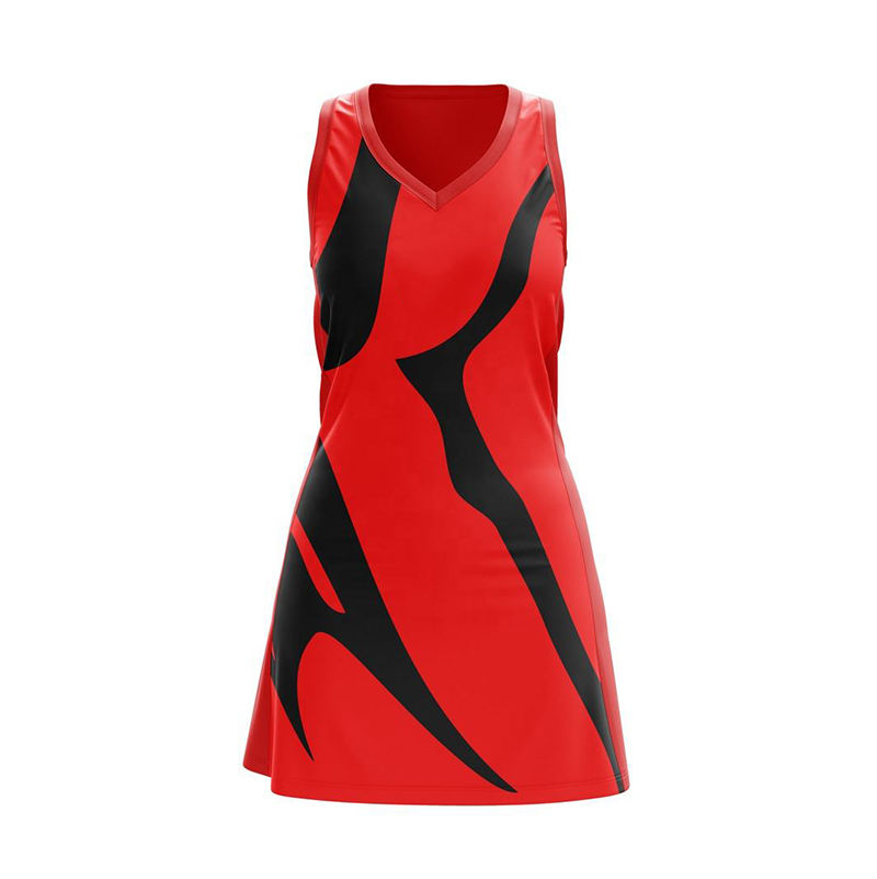 ชุดเดรสเครื่องแบบเน็ตบอลของผู้หญิงชุดเดรสพิมพ์ลายสำหรับแข่งระดับมืออาชีพพิมพ์ซับลิเมชันตามสั่ง