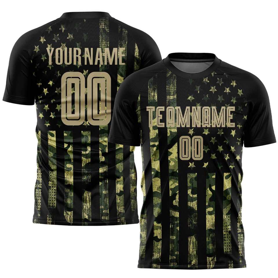 เสื้อยืดกีฬาแบบซับลิเมชั่นสีดำลายดาวทองพร้อมชื่อและหมายเลขทีม