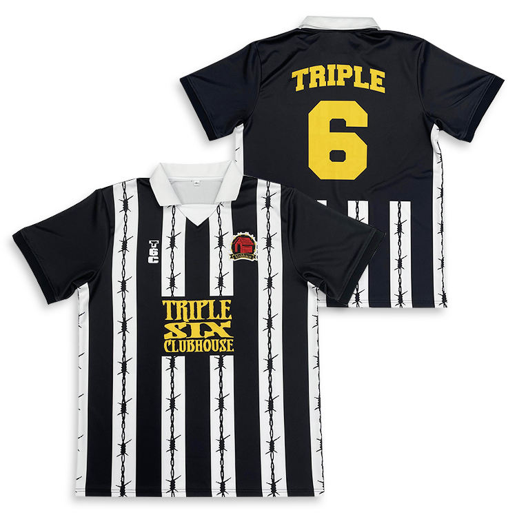 เสื้อฟุตบอลคอโปโลดีไซน์กระดุมแถบพิมพ์ซับลิเมชันตามสั่ง