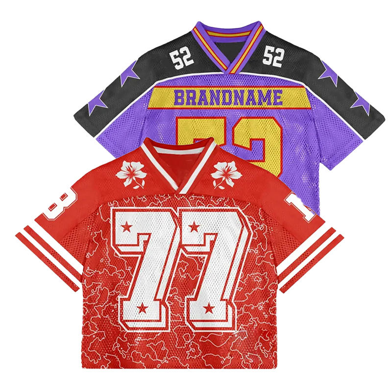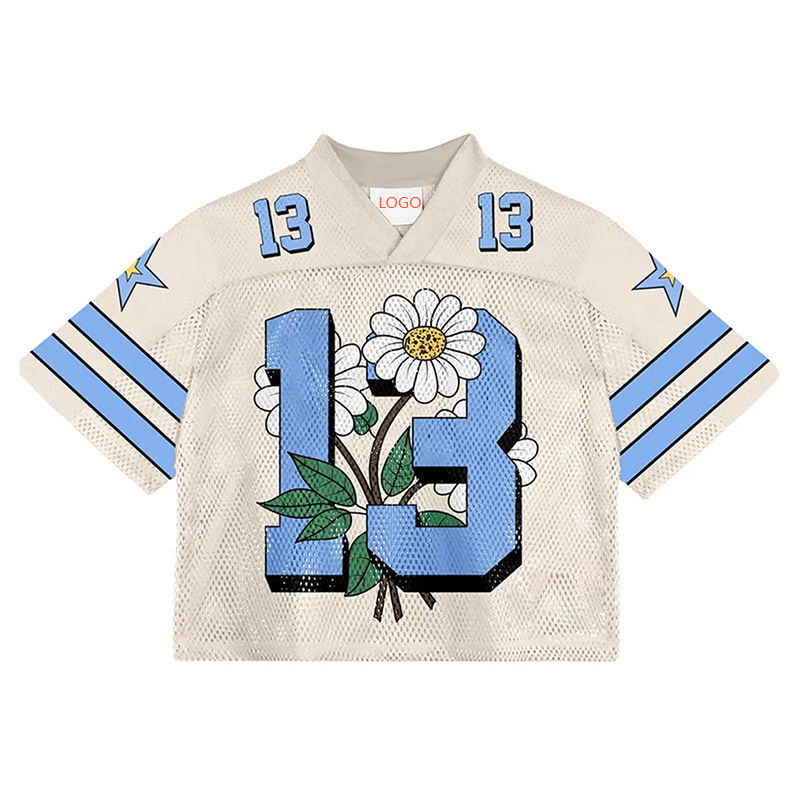 เสื้อยืดกีฬาอเมริกันฟุตบอลพิมพ์ลายพิมพ์ซับลิเมชันออกแบบได้ตามต้องการสำหรับผู้ใหญ่/เยาวชนสไตล์ฮิปฮอปฤดูร้อน