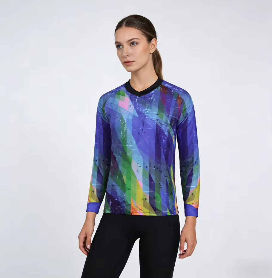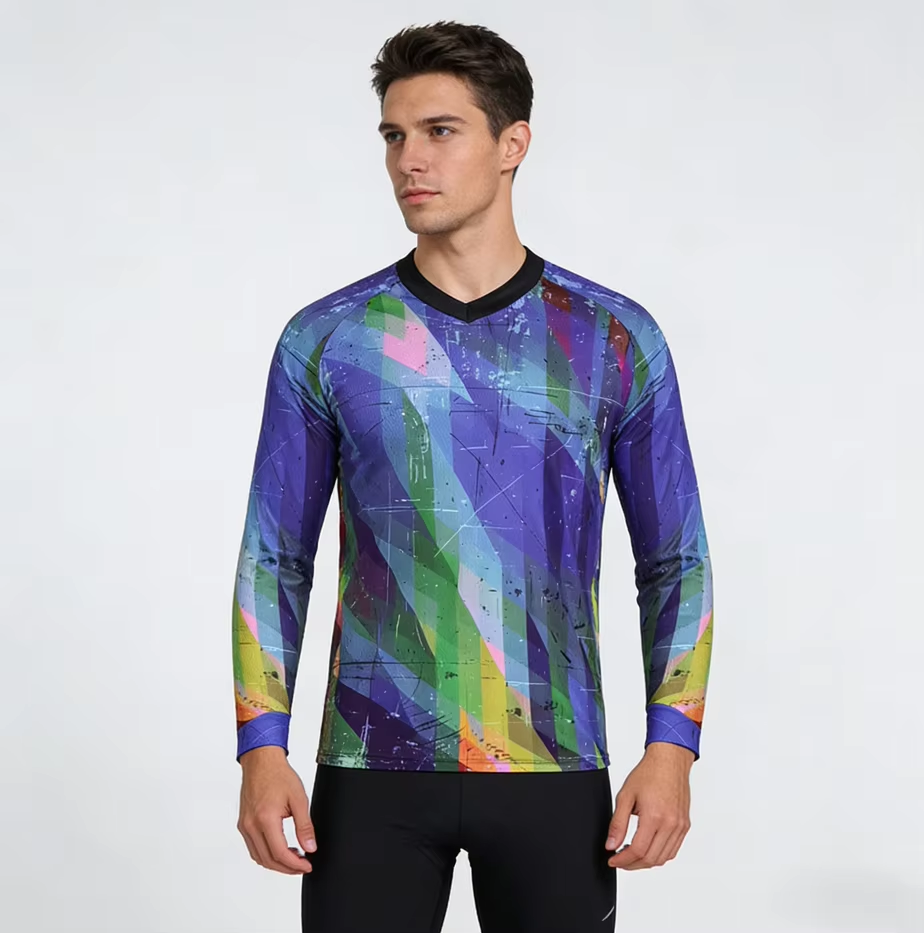 เสื้อเจอร์ซีย์จักรยานแบบซับลิเมชั่นสั่งทำได้ แขนยาว แห้งเร็ว ระบายอากาศได้ดี น้ำหนักเบา สำหรับปั่นจักรยานเสือภูเขาลงเขา ขายส่งจากโรงงานโดยตรง