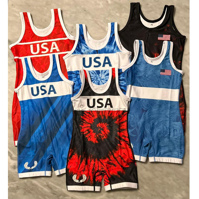เสื้อกล้ามนักมวยปล้ำแบบซับลิเมชันสำหรับผู้ชายบอดี้สูทแบบยกน้ำหนัก