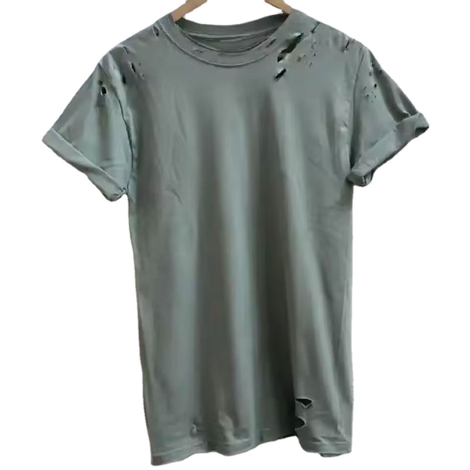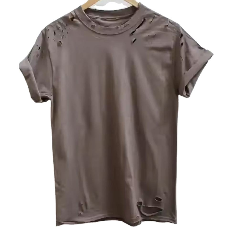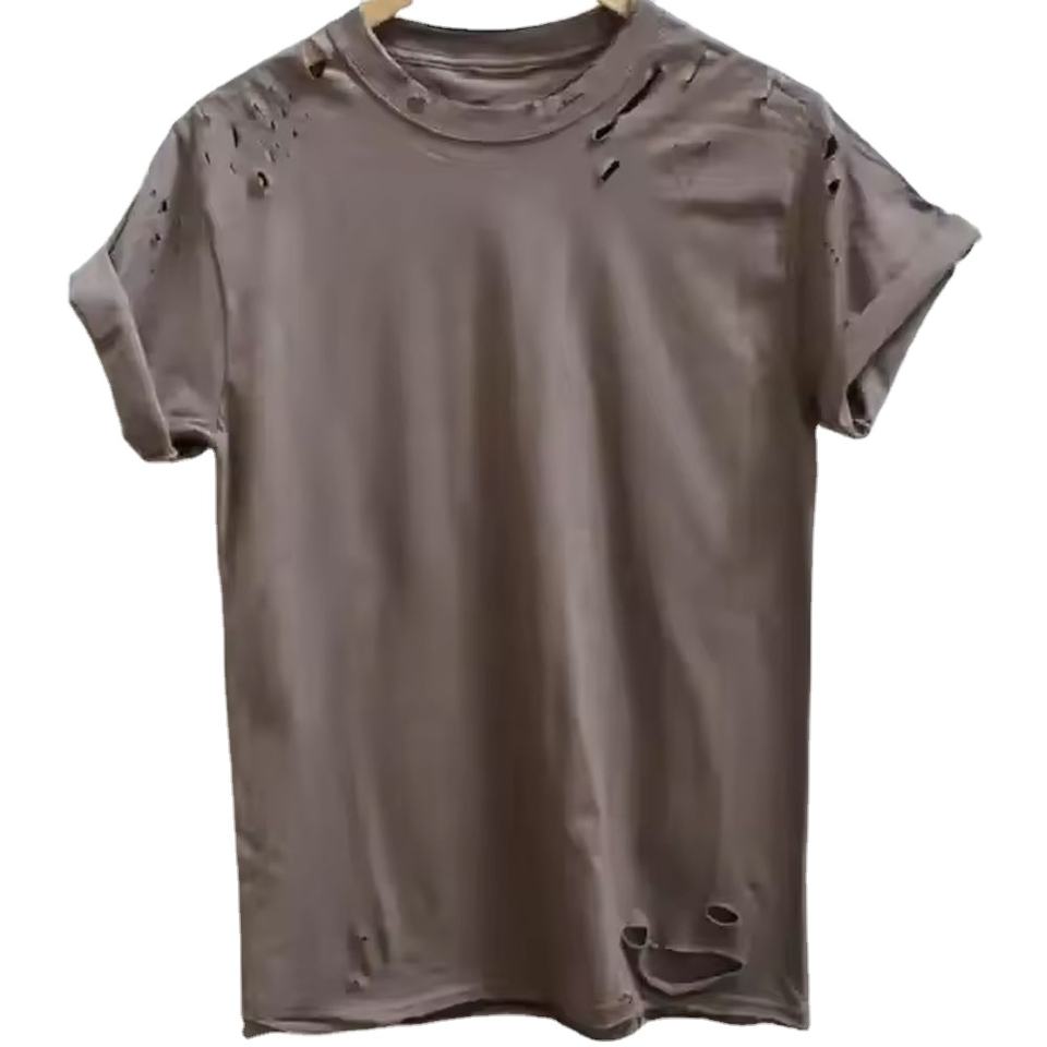 เสื้อยืดผู้ชายผ้าคอตตอนลายหยาบแบบย้อนยุคสำหรับ2025ฤดูร้อนกำหนดได้เอง