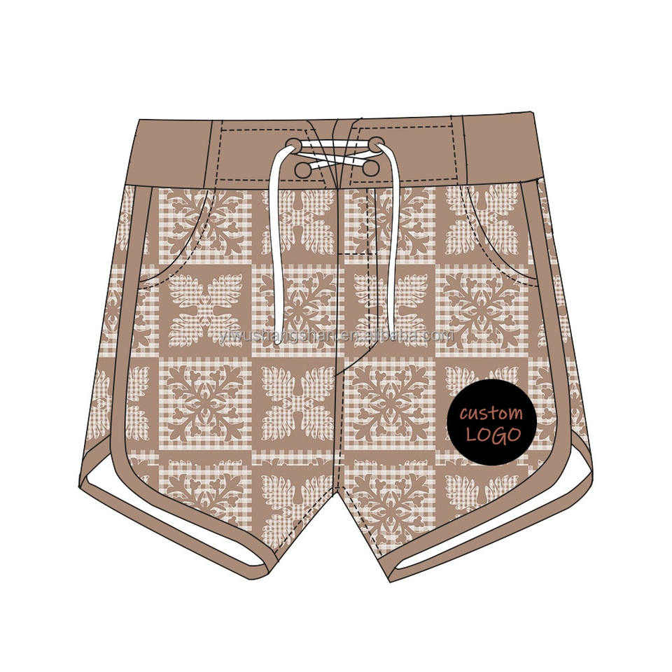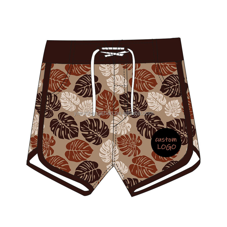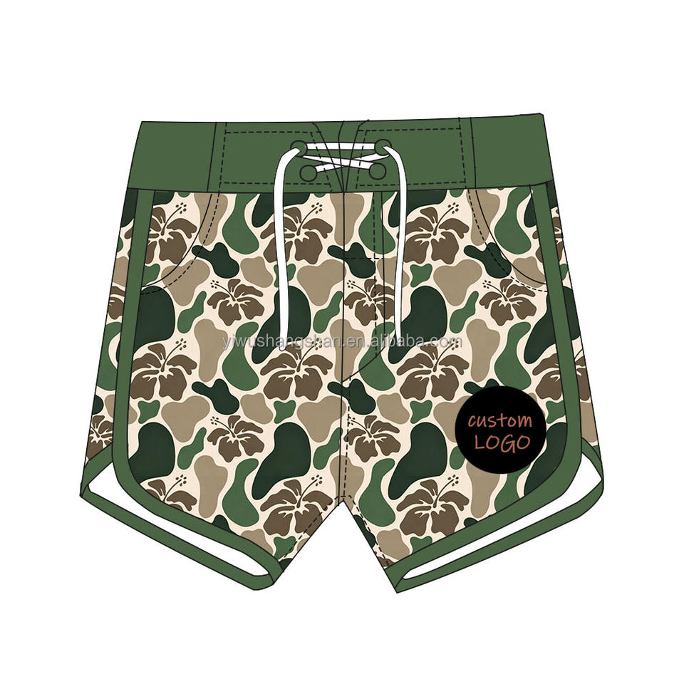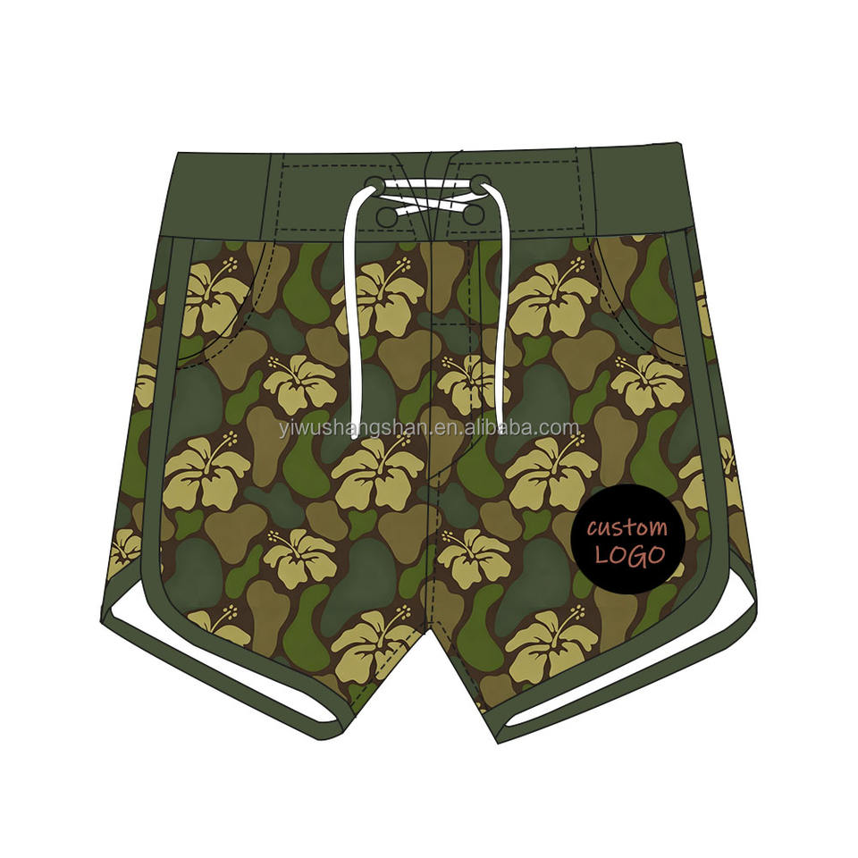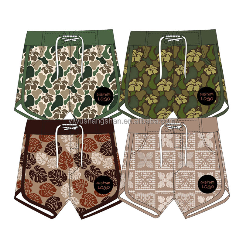 กางเกงว่ายน้ำสำหรับเด็กผู้ชายกางเกงขาสั้นเอวสูงพิมพ์ลายฮาวายสำหรับเด็กวัยหัดเดิน