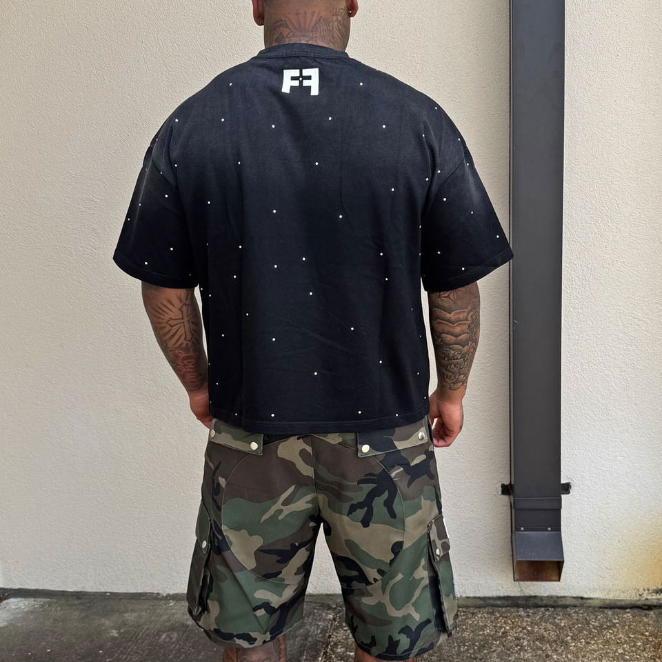 ชุดเสื้อยืดลำลองและกางเกงขาสั้นคาร์โก้สำหรับผู้ชายชุด2ชิ้นเสื้อไรน์สโตนทันสมัยและกางเกงขาสั้นคาร์โก้แฟชั่นออกแบบได้ตามต้องการฤดูร้อน