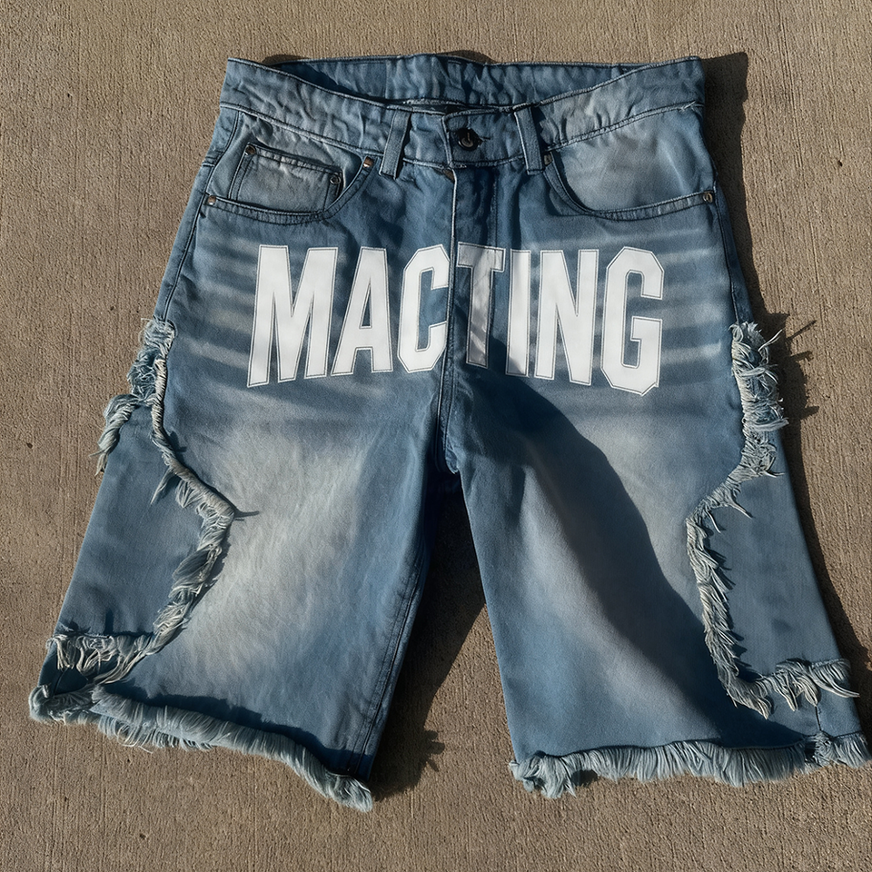 กางเกงยีนส์เบอร์มิวดาใส่ได้ทั้งชายและหญิงทรงแบร์มิวดายาวถึงเข่าทำจากพลอยเทียมปักลายสำหรับฤดูร้อนตามสั่ง
