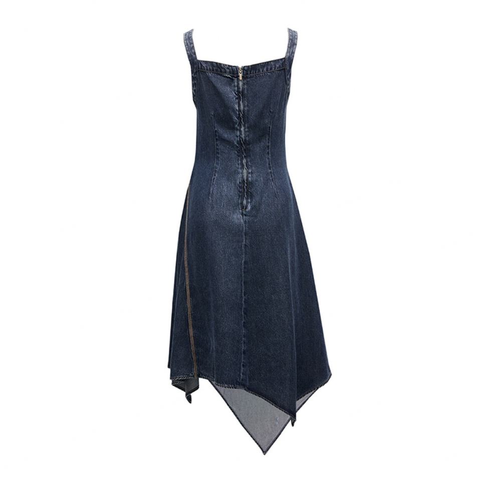 ชุดเดรสยีนส์ฤดูร้อนแบบสั่งทำสำหรับผู้หญิง กระโปรงทรงเอแบบใหม่พร้อมซิป ทรงเข้ารูปสไตล์วินเทจ ชุดเอี๊ยมเดรสผู้หญิง