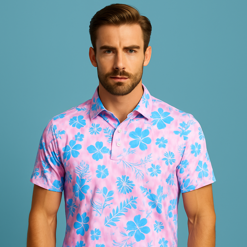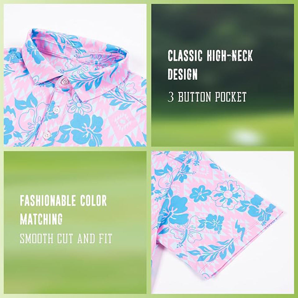 เสื้อโปโลแฟชั่นกอล์ฟผ้าสแปนเด็กซ์กันลื่นระบายอากาศลายดอกไม้ออกแบบได้ตามต้องการฤดูร้อน