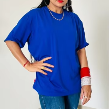 เสื้อยืดโอเวอร์ไซส์ลำลองสำหรับผู้หญิง ผ้าฝ้ายคอตตอน 180 กรัม ดีไซน์ตัวอักษรเกาหลี คอทรงโอ แบบสบายๆ ไซส์พลัส รุ่น BD เป็นมิตรกับสิ่งแวดล้อม