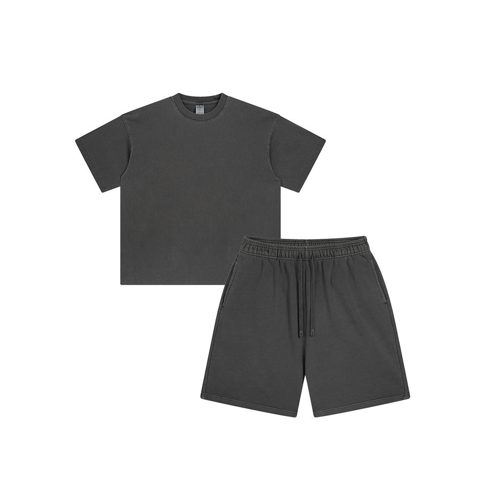 ชุดเซตกางเกงขาสั้นเสื้อยืดแขนสั้น2ชิ้นสำหรับผู้ชายชุดวอร์มสีพื้นสำหรับผู้ชายชุดฤดูร้อนตามสั่ง