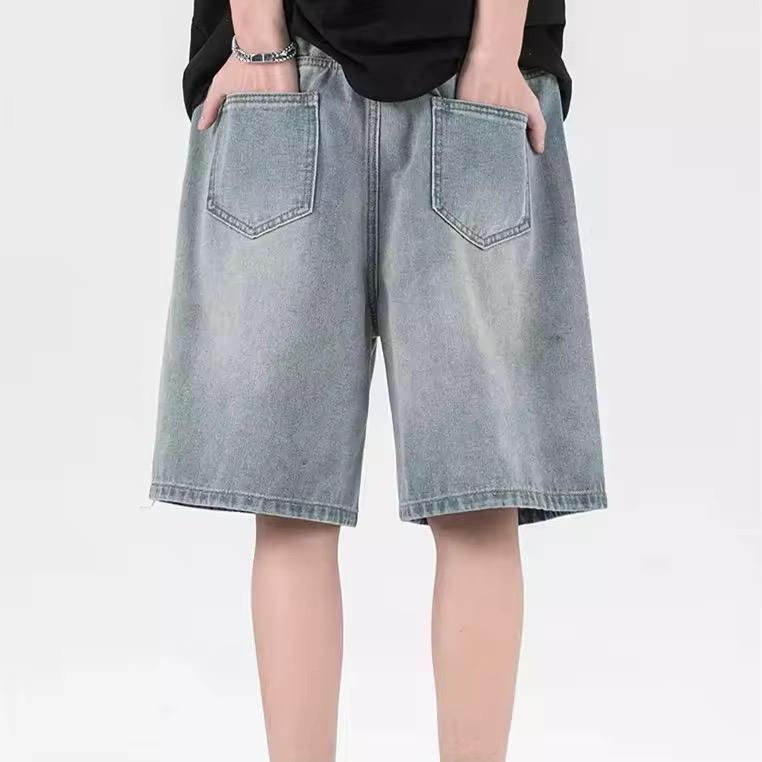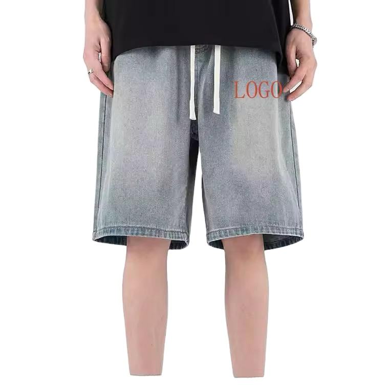 กางเกงยีนส์ขาสั้นผู้ชายสำหรับฤดูร้อน ระบายอากาศได้ดี สีซีดสไตล์ลำลอง สตรีทแวร์ ทรงหลวม ผ้าฝ้าย 100% ออกแบบโลโก้ได้ตามต้องการ