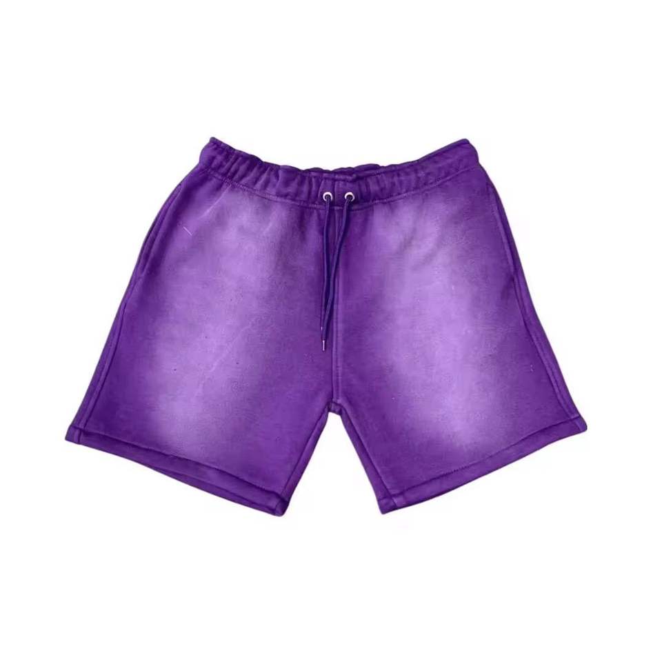 กางเกงขาสั้นผู้ชายสไตล์ลำลองสำหรับฤดูร้อน ผ้าฝ้ายดิบ พิมพ์ลายพัฟฟ์ ประดับคริสตัล ล้างสีแบบซันเฟด ล้างสีแบบแอซิดวอช สตรีทแวร์