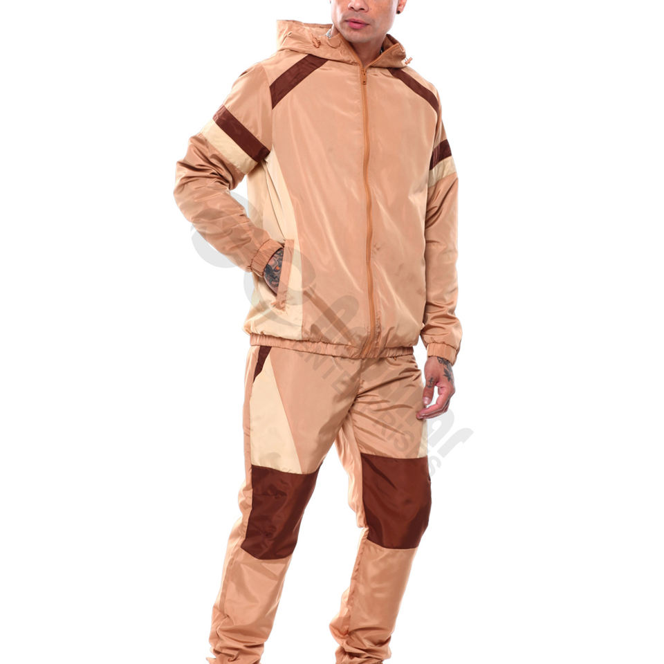 ชุดเสื้อแจ็คเก็ตกันลมสำหรับผู้ชายชุดวิ่งออกกำลังกายผ้าโพลีเอสเตอร์สองชิ้นผ้าไนลอนออกแบบได้ตามต้องการฤดูร้อน