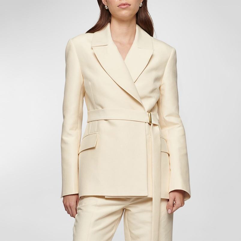 ชุดสูทสองชิ้นสำหรับผู้หญิงชุดทำงานแบบทางการสีทึบสำหรับผู้หญิงชุดสูททำงานสีพื้นฤดูร้อนแบบกำหนดเอง