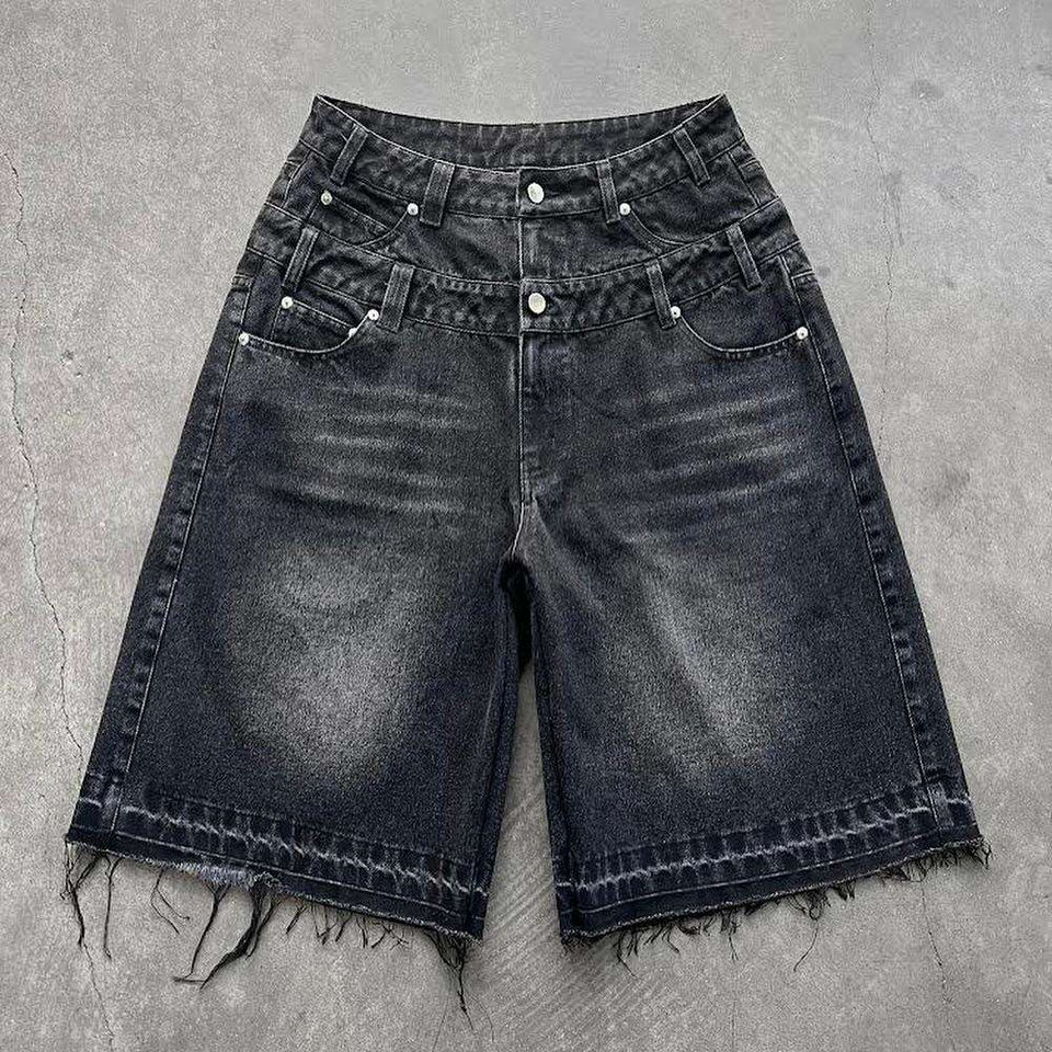กางเกงขาสั้นสไตล์วินเทจลำลองสำหรับฤดูร้อน กางเกงทำงานทรงหลวม กางเกงยีนส์ขาสั้นแฟชั่นผู้ชาย ระบายอากาศได้ดี